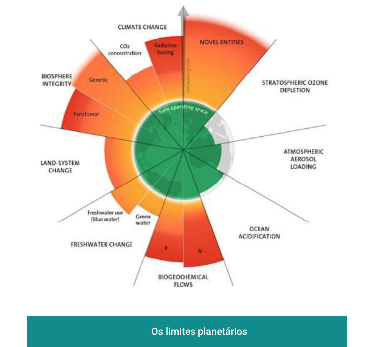Pesquisa realizada pelo Stockholm Resilience Centre (RICHARDSON et al., 2023) atualizou a estrutura dos limites planetários e constatou que 6 dos 9 limites foram transgredidos, e o nível de transgressão aumentou para todos os limites anteriormente ultrapassados. Este resultado sugere que a Terra estaria agora bem fora do espaço operacional seguro para a humanidade. É como se já não vivêssemos no velho e conhecido planeta, mas sim em um ambiente desconhecido que não funciona da maneira que conhecíamos. E precisamos nos adaptarmos para viver nesta nova realidade, com foco em estruturar resiliência e respostas locais.