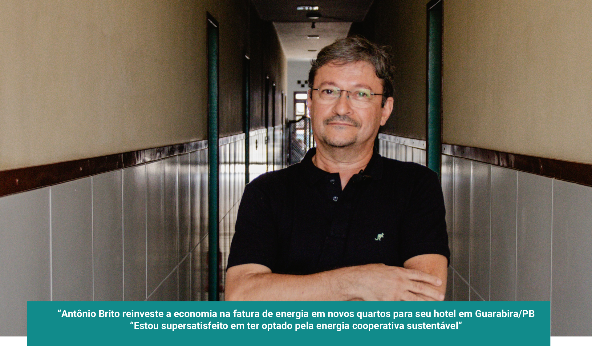 Antônio Brito é proprietário do Hotel Lucena em Guarabira, Paraíba, e foi um dos primeiros a aderir à COOPSOLAR. “Eduardo Braz me explicou o plano da cooperativa, eu vi que dava para mim, e hoje participo das usinas Lucena e Praia Bela”. O valor economizado nas faturas de energia, ele reinvestiu em seu negócio: “Cheguei a pagar conta de oito mil reais. Com a diminuição dos custos operacionais, sobrou dinheiro para fazer alguns investimentos e hoje tenho mais quartos no hotel.”